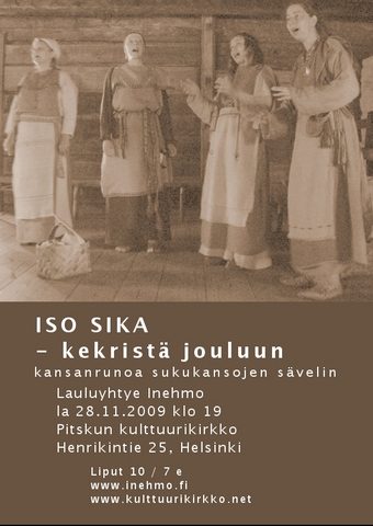 28.11.2009 ISO SIKA - kekristä jouluun. Inehmon konsertti Pitskun kulttuurikirkossa Helsingissä. Lue konserttia esittelevä tiedote ->